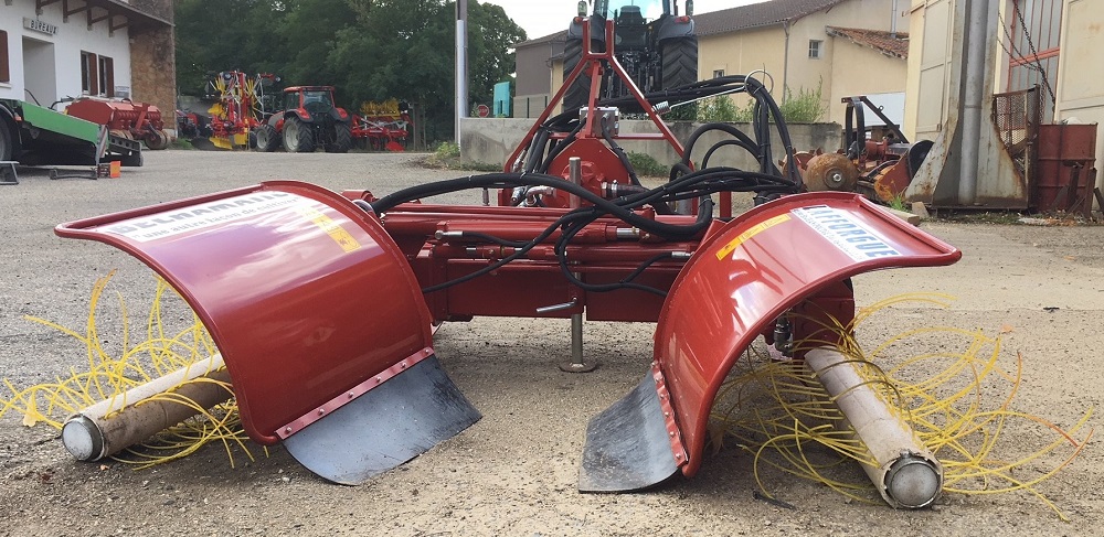 Monté sur un système de ressort, chaque rotor pourra s’effacer à la pression sur l’obstacle ( piquet, tronc..) avec l’avancement.