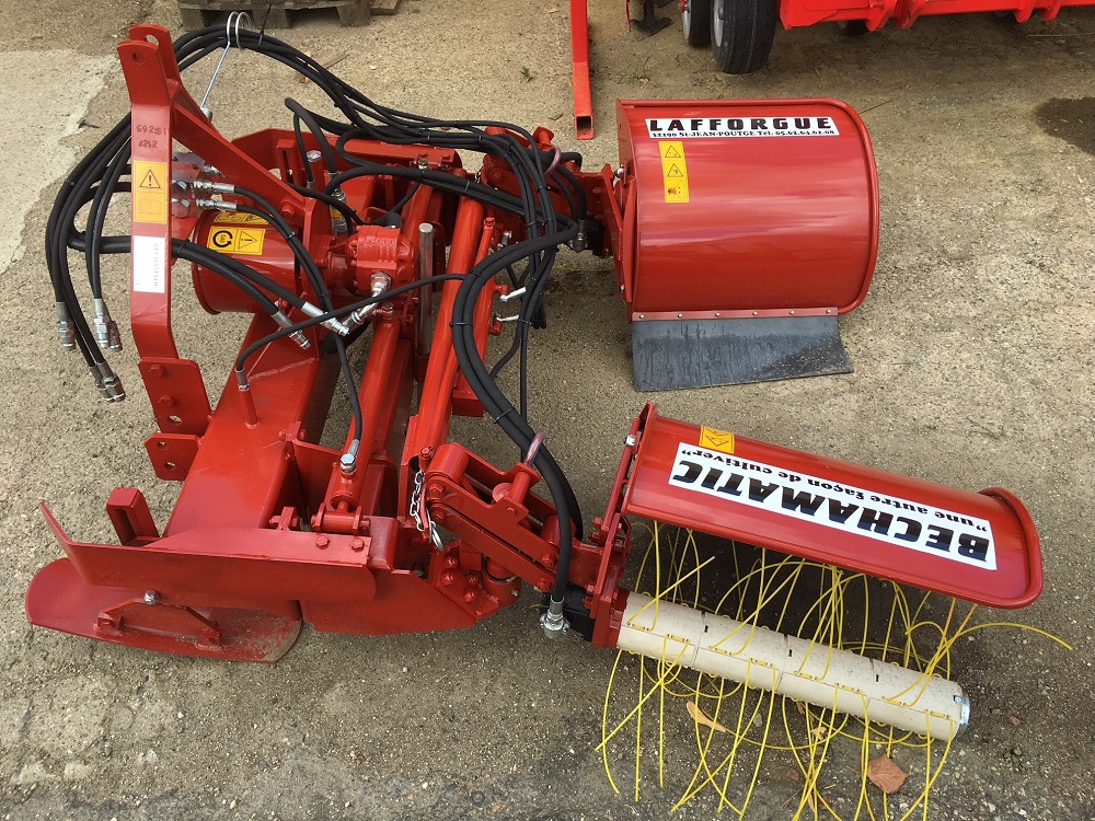 Le réglage de la largeur se fait en fonction de l’écartement inter-rang, par l’action d’un vérin hydraulique double effet.